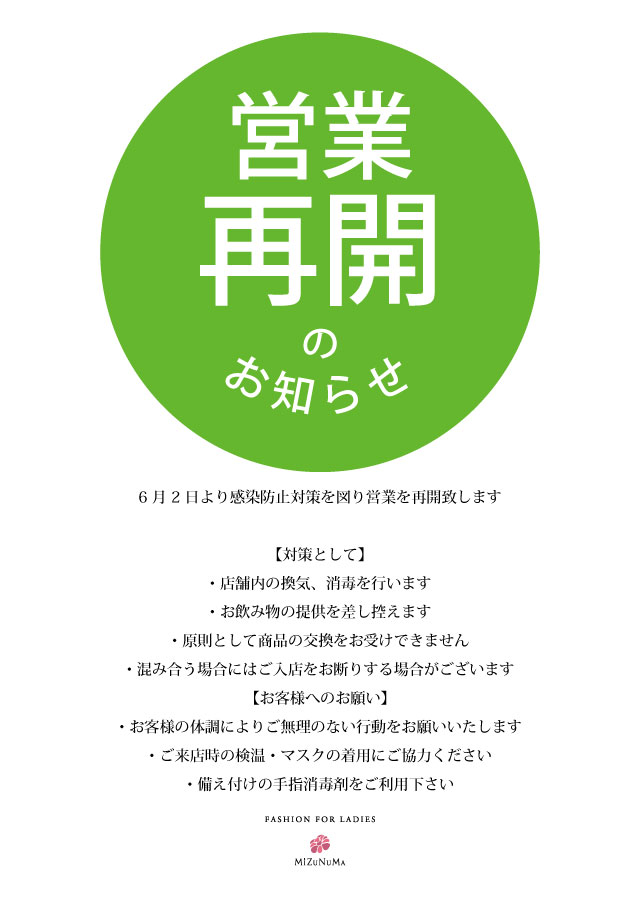 営業再開のお知らせ