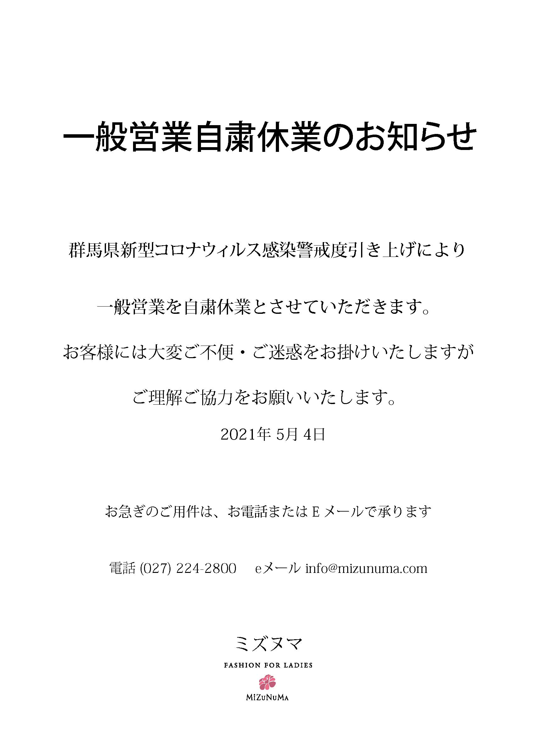 一般営業自粛休業のお知らせ