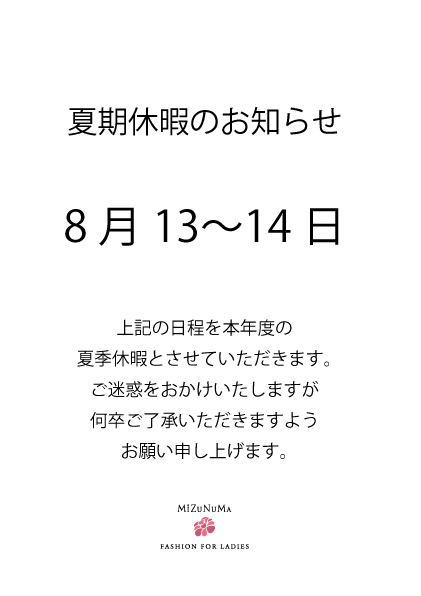 夏期休暇のお知らせ